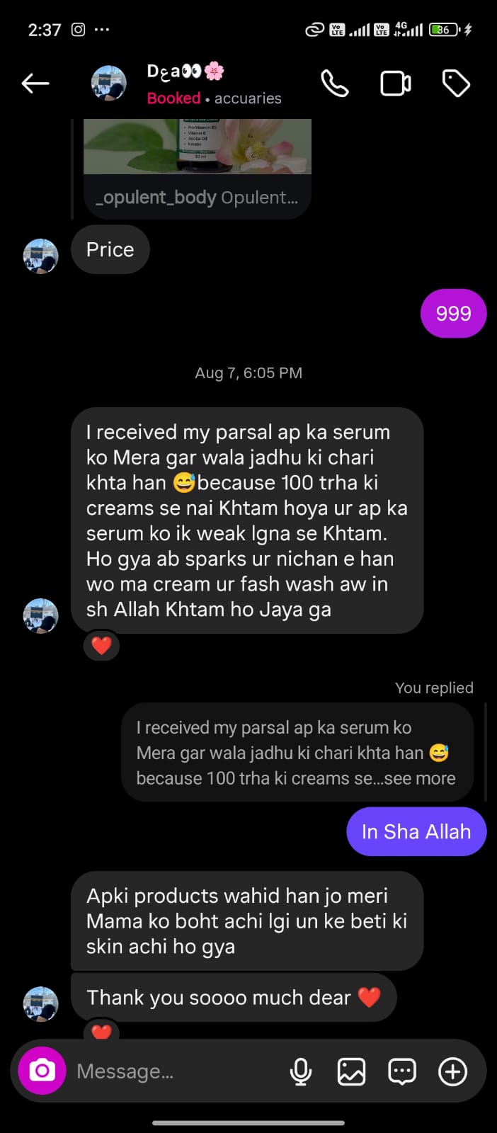 Opulent Body's Anti-Acne & Glowing Serum is specially formulated to combat acne, reduce scars, and reveal a radiant complexion. Enriched with Salicylic Acid 2%, Tea Tree Extract, and Vitamins C & E, this powerful serum helps clear acne in as little as 3 days and fades scars within 7 to 10 days. Its lightweight formula penetrates deep into the skin to target breakouts while brightening and improving skin texture.